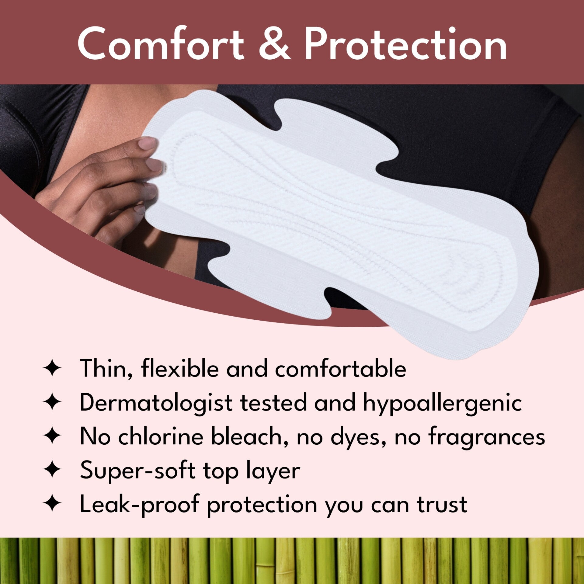 USDA Certified Biobased ultra pads crafted with plant-based ingredients that are gentle to your skin and kind to the planet. No chlorine bleach. No dyes. No fragrances.